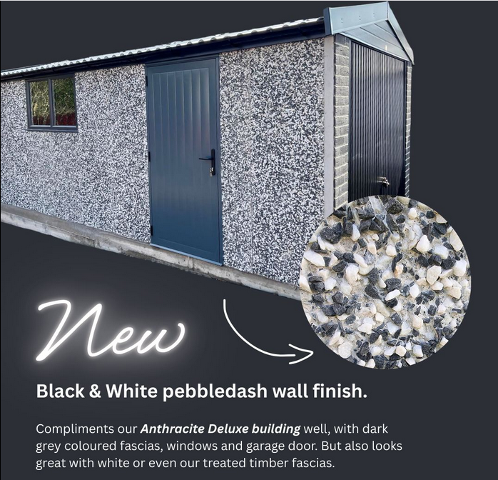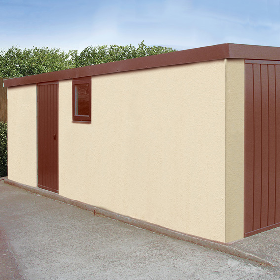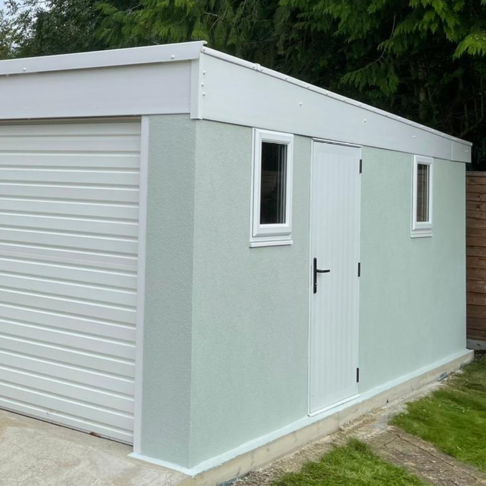 This resin-based textured render finish adds style to your building and allows you to match the look of your garage or shed to a rendered home, creating a seamless appearance.